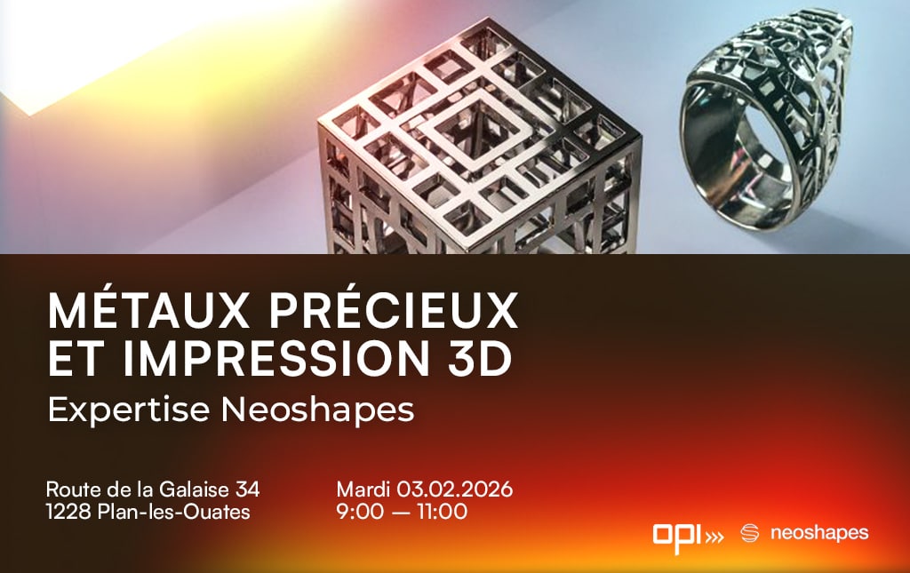 La première rencontre 2026 du groupe de travail Fabrication Additive sera consacrée aux métaux précieux et à leurs applications dans les secteurs de la joaillerie, de l’horlogerie et de la lunetterie.