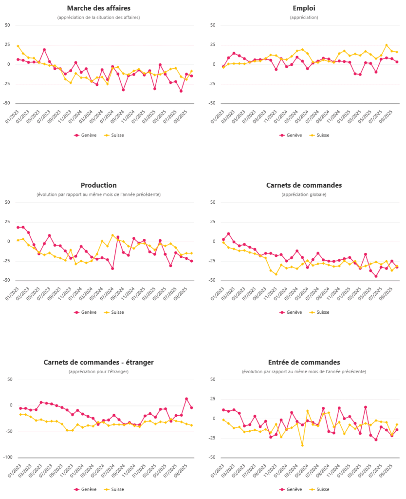 La particularité réside dans le carnet des commandes à l’étranger : Genève enregistre une baisse moins sévère que la moyenne suisse, ce qui pourrait traduire une concentration différente des marchés d’exportation ou une spécialisation sectorielle qui résiste mieux aux fluctuations internationales.